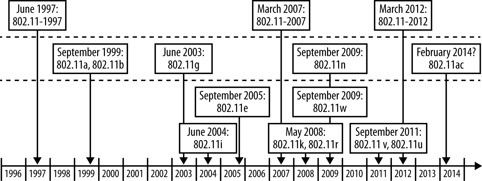 | Wi-Fi 1 (非官方) | 1999 | 802.11b | 2.4GHz | 11Mbps |