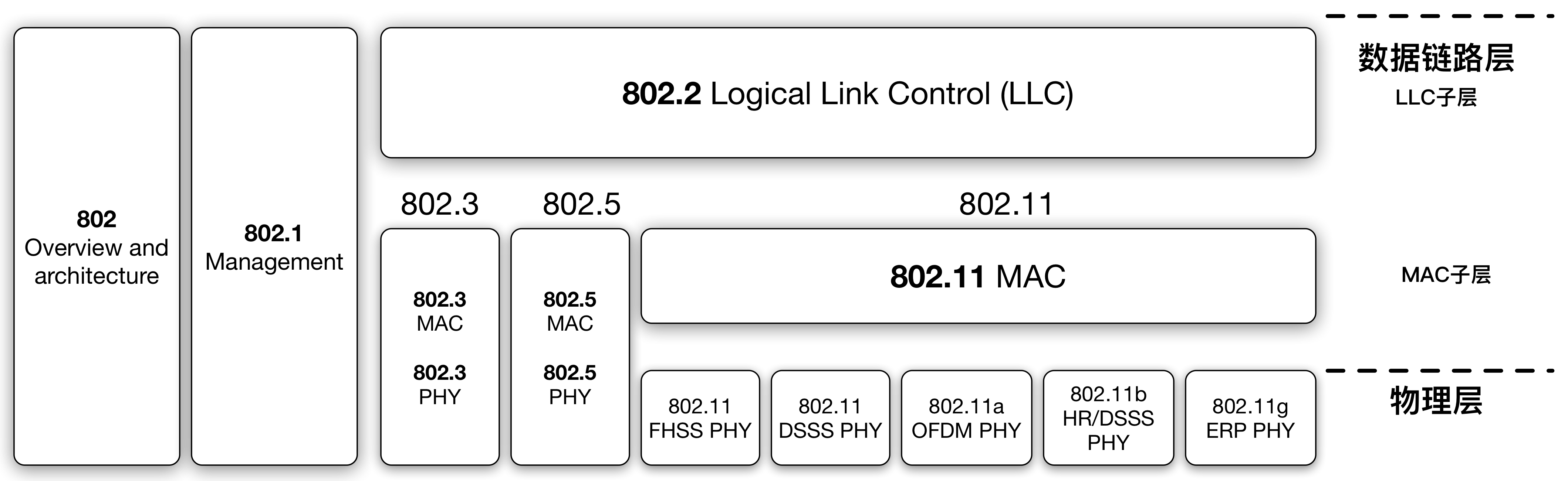 射频(Radio Frequency, RF) 技术建立的不依赖可见物理传输介质的无线通信局域网络| ⽆线⽹络类别 | IEEE | ITU |