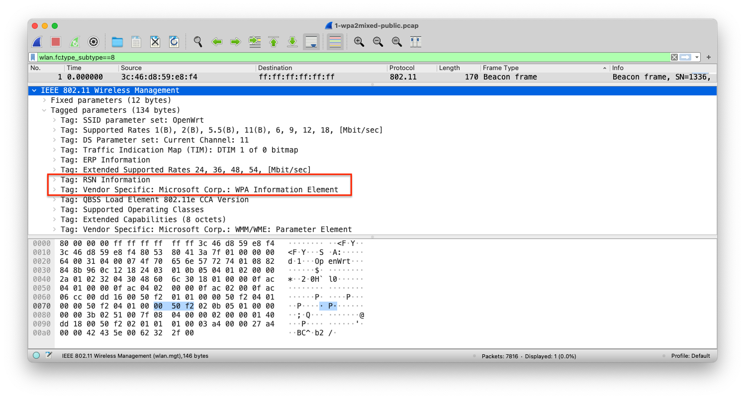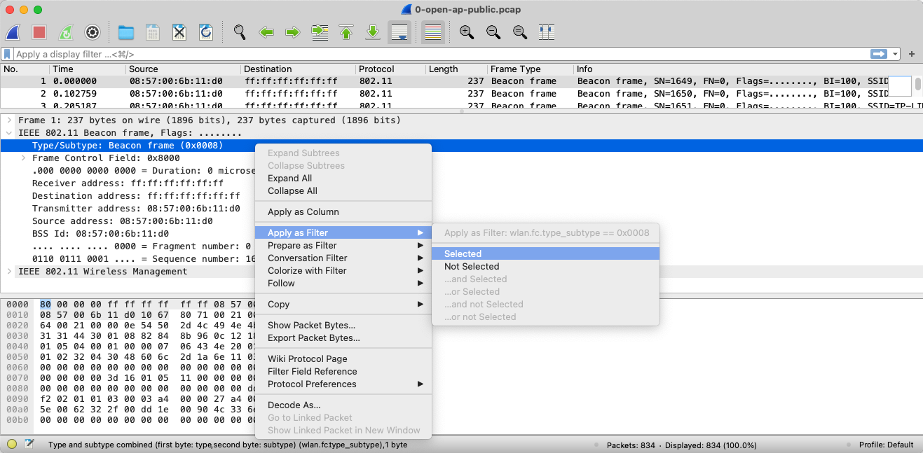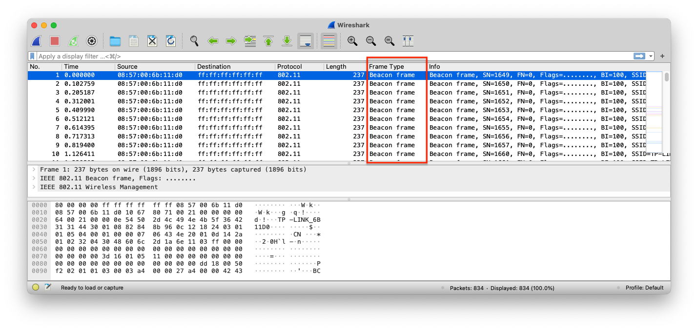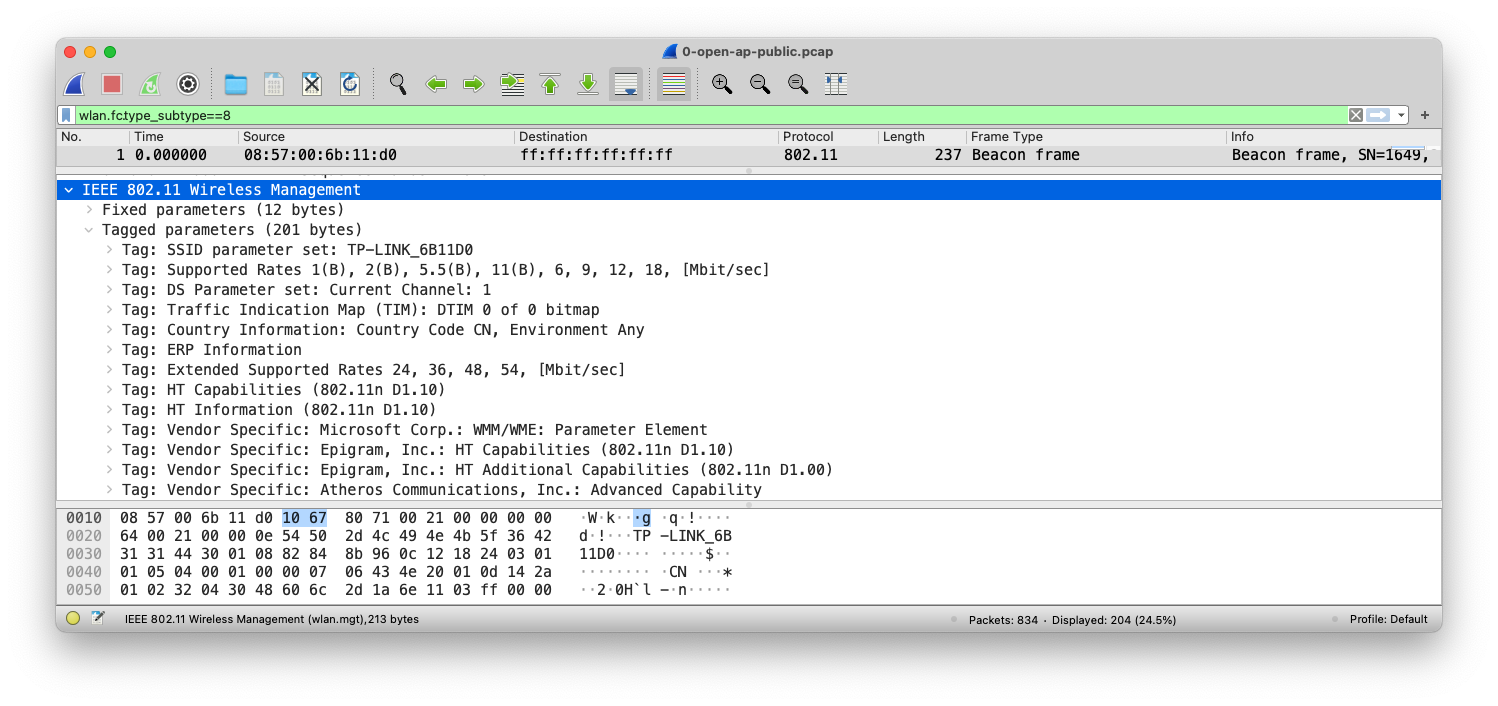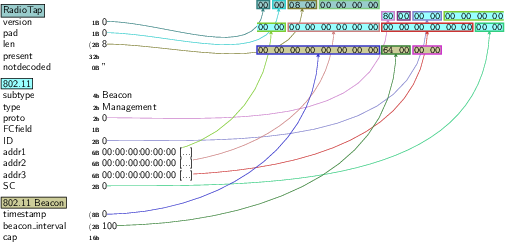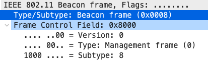 # 使用 --beacons 参数可以记录每一个独立BSSID发送的所有beacon frame