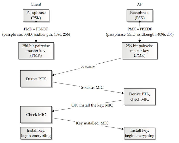 | PTK | 加密单播(unicast)通信 | 产生自 PMK/PSK |