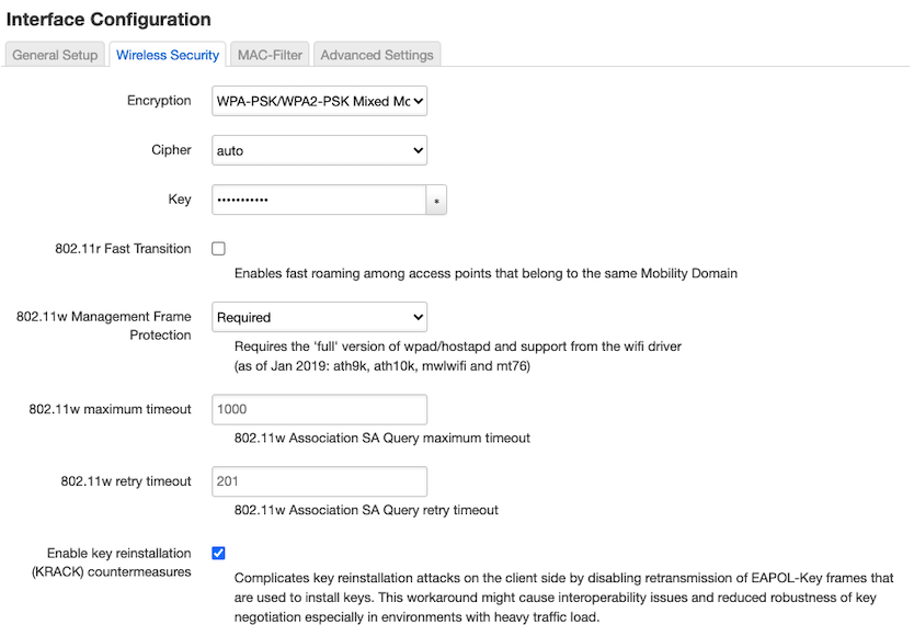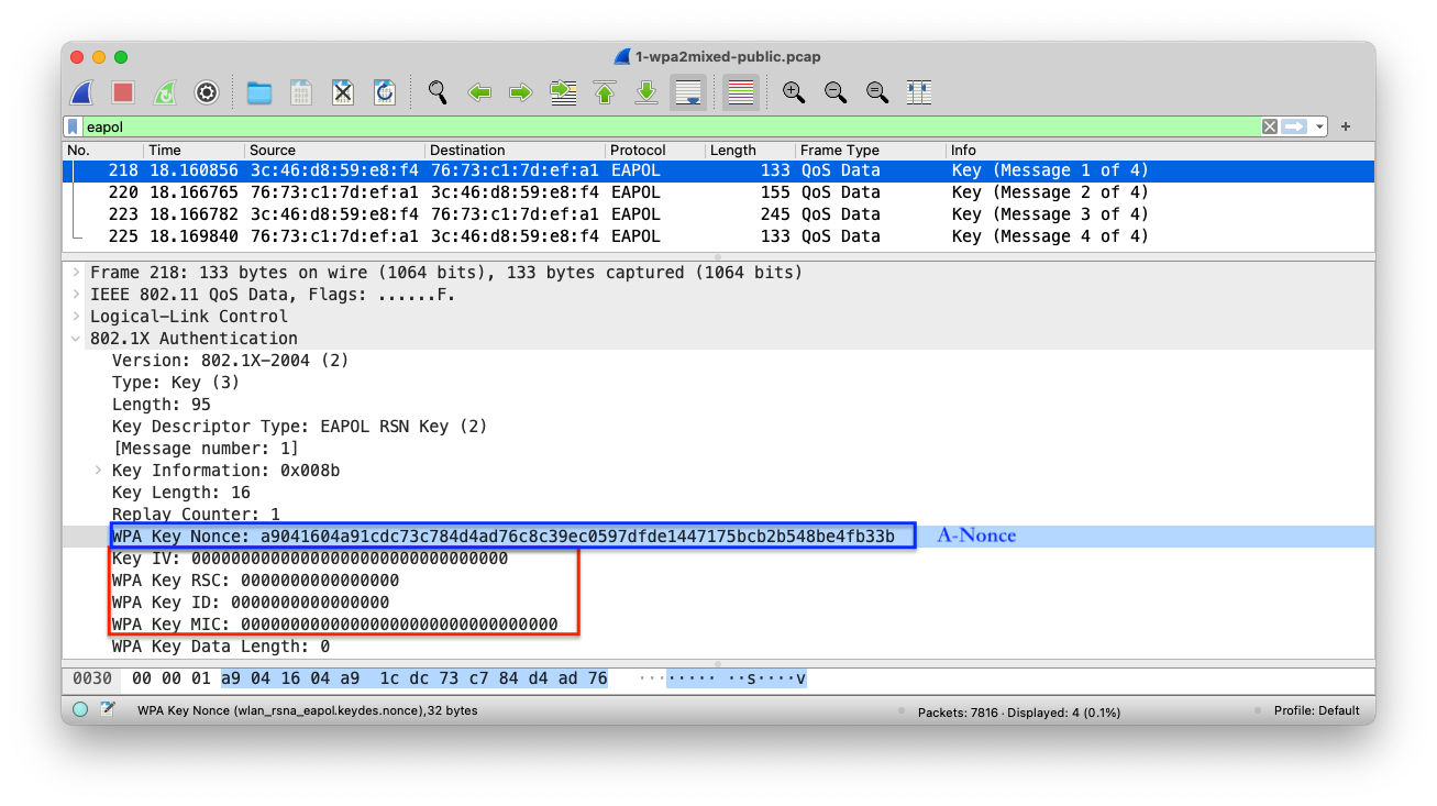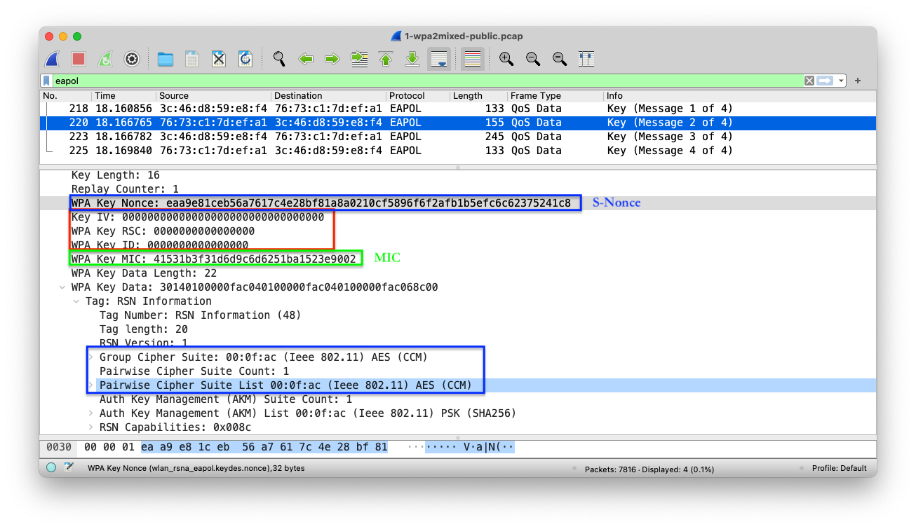 | GTK | 加密广播(broadcast)和多播(multicast)通信 | 产生自 PMK/PSK |