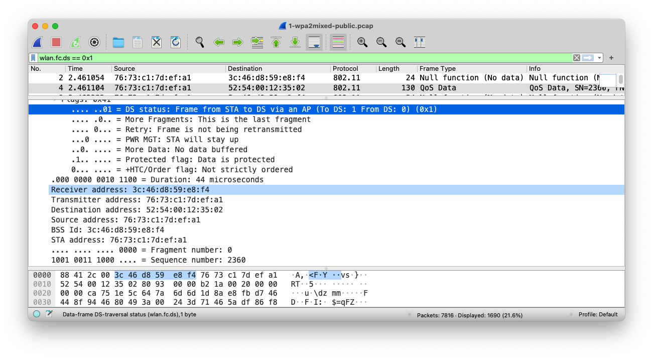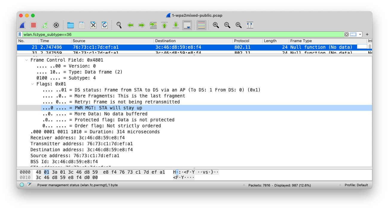 (wlan.addr == 3c:46:d8:59:e8:f4) || (wlan.addr == 76:73:c1:7d:ef:a1) && (wlan.fc.type_subtype <= 0x1b || eapol) && !(wlan.addr == ce:1e:34:cd:76:a9) && !(wlan.addr == ba:2a:cd:46:18:22) && !(wlan.da == 48:64:12:67:f9:c2) && !(wlan.fc.type_subtype == 0x001b) && !(wlan.fc.type_subtype == 0x000a) && !(wlan.fc.type_subtype == 0x000c) && !(wlan.addr == 9c:c8:f3:82:89:e0)
