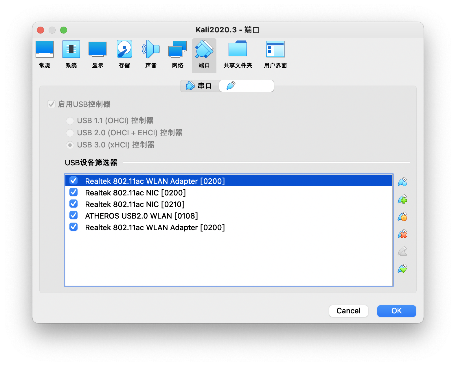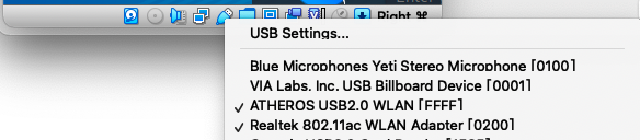 Virtualbox 的 USB 设备管理菜单能识别连入的 USB 无线网卡