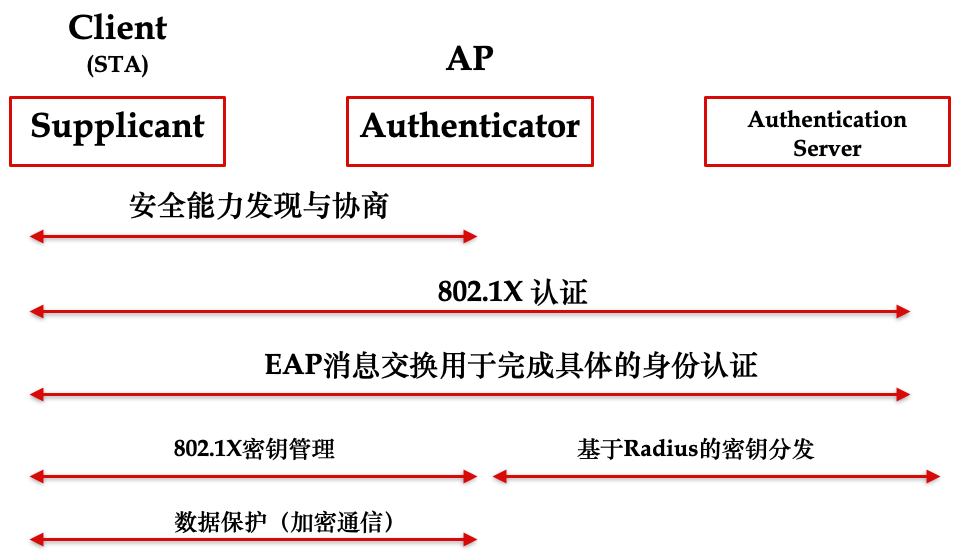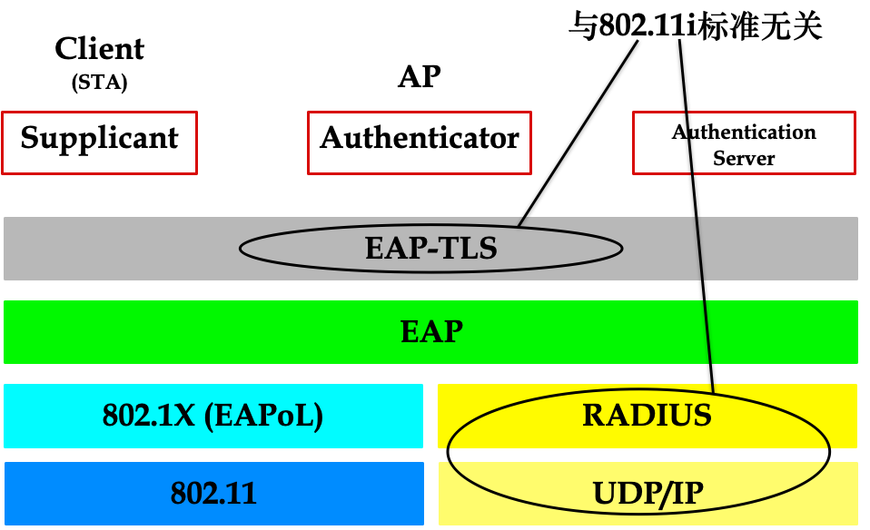 AP 在这个过程中扮演认证代理角色RADIUS 是 EAP 在 IP 网络中传输的事实标准EAP encapsulation over LAN.