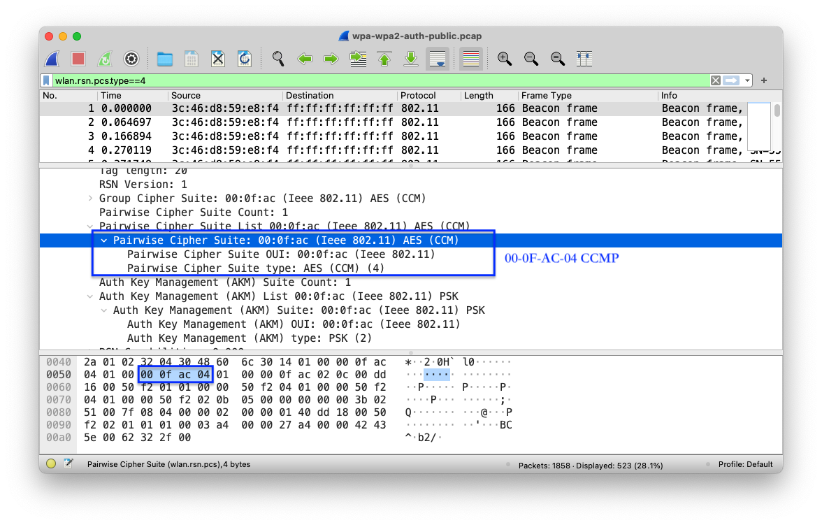 # 只看 AP 的 Beacon Frame 中声明的安全信息