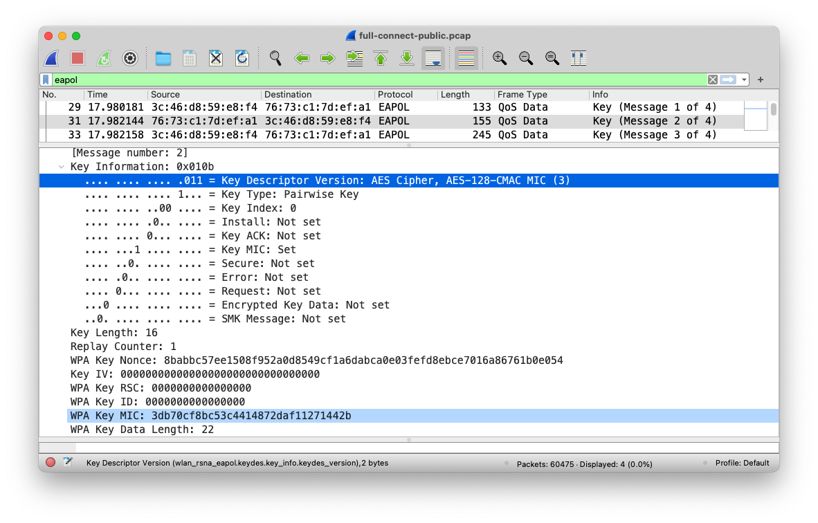 # CCMP 条件下协商使用 AES Cipher, AES-128-CMAC MIC (3)