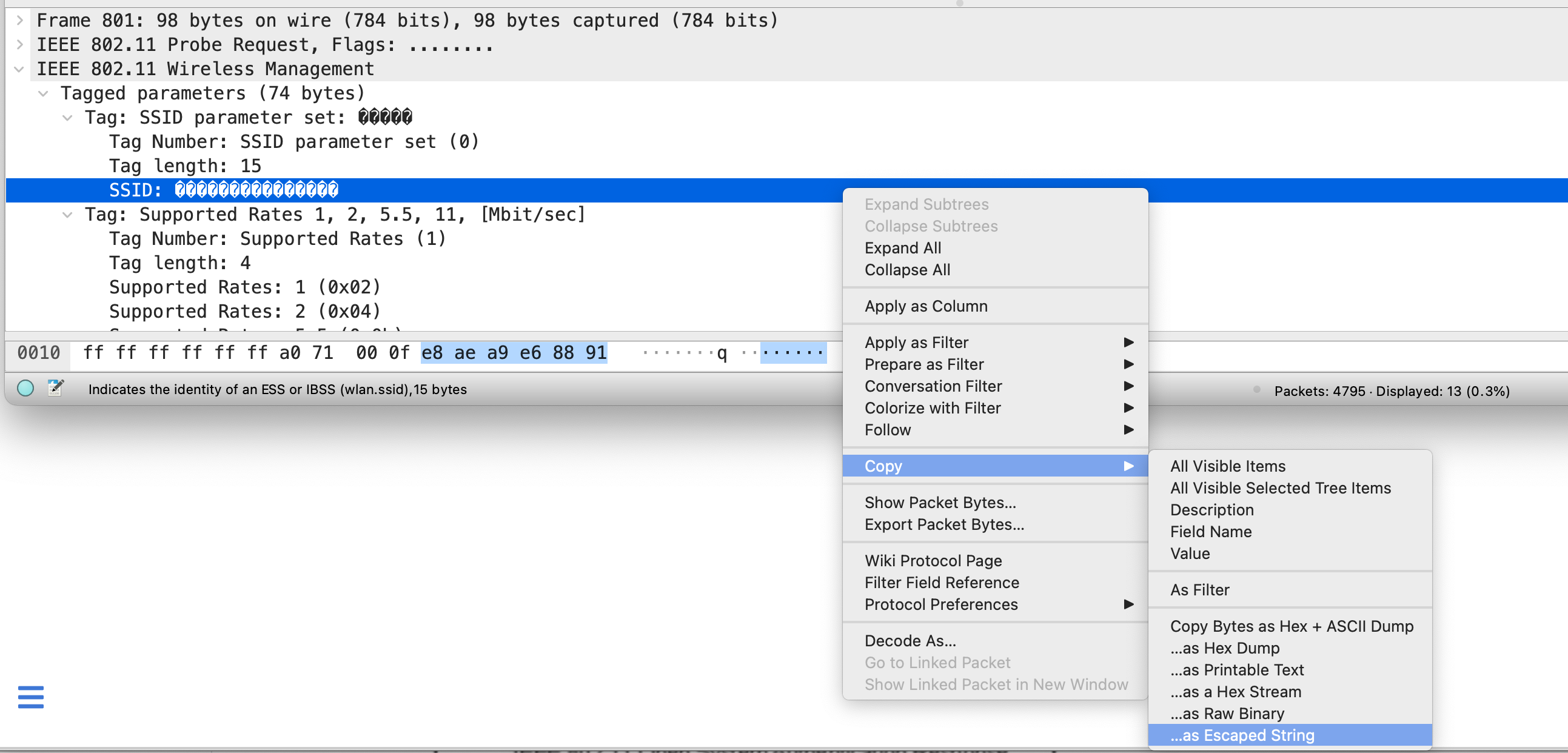SSID ,此字段设置为0SSID 字段的长度SSID:人类可读、可识别的无线网络名称