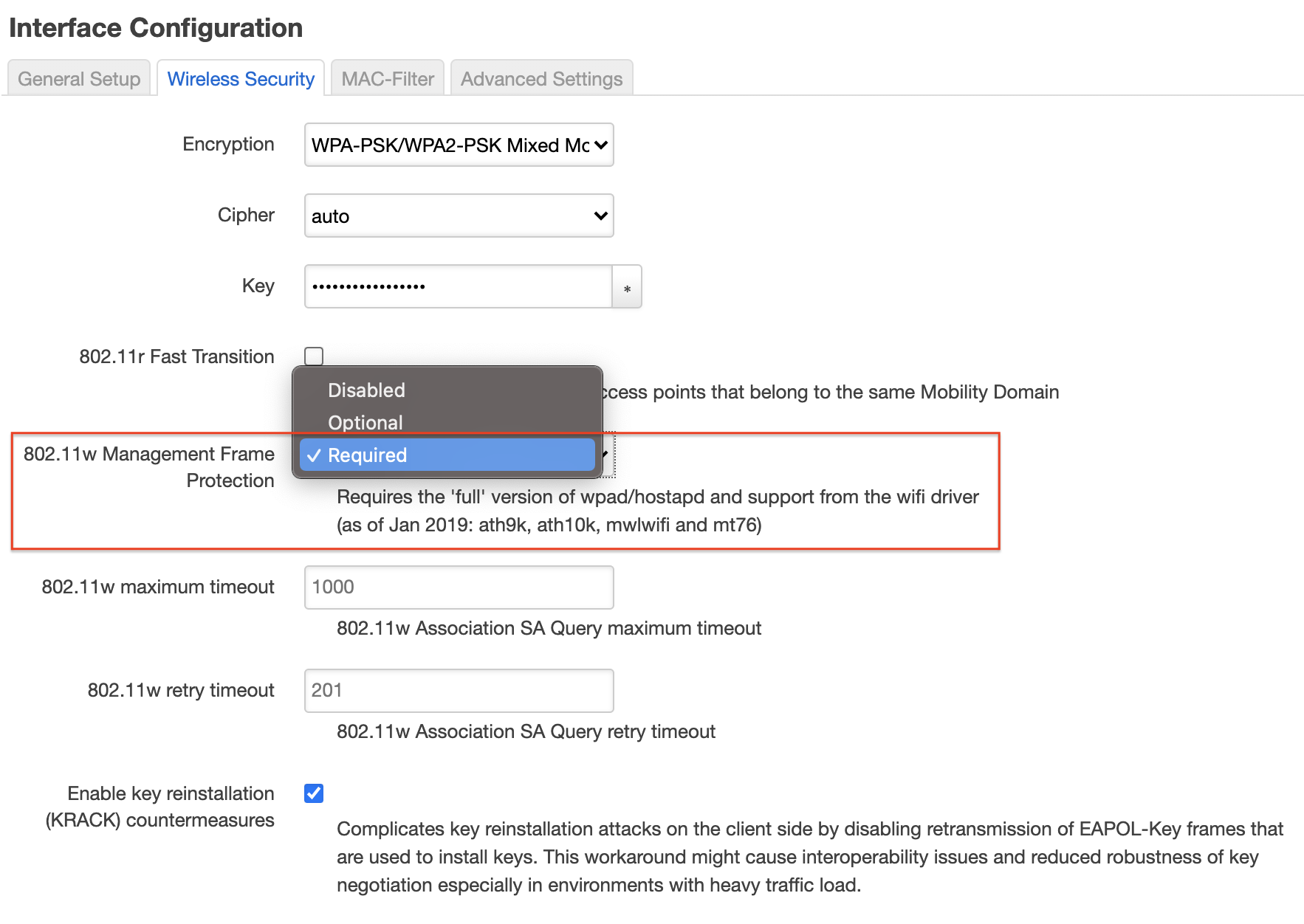 WPA2 启用了 PMF 后(WPA 不支持)