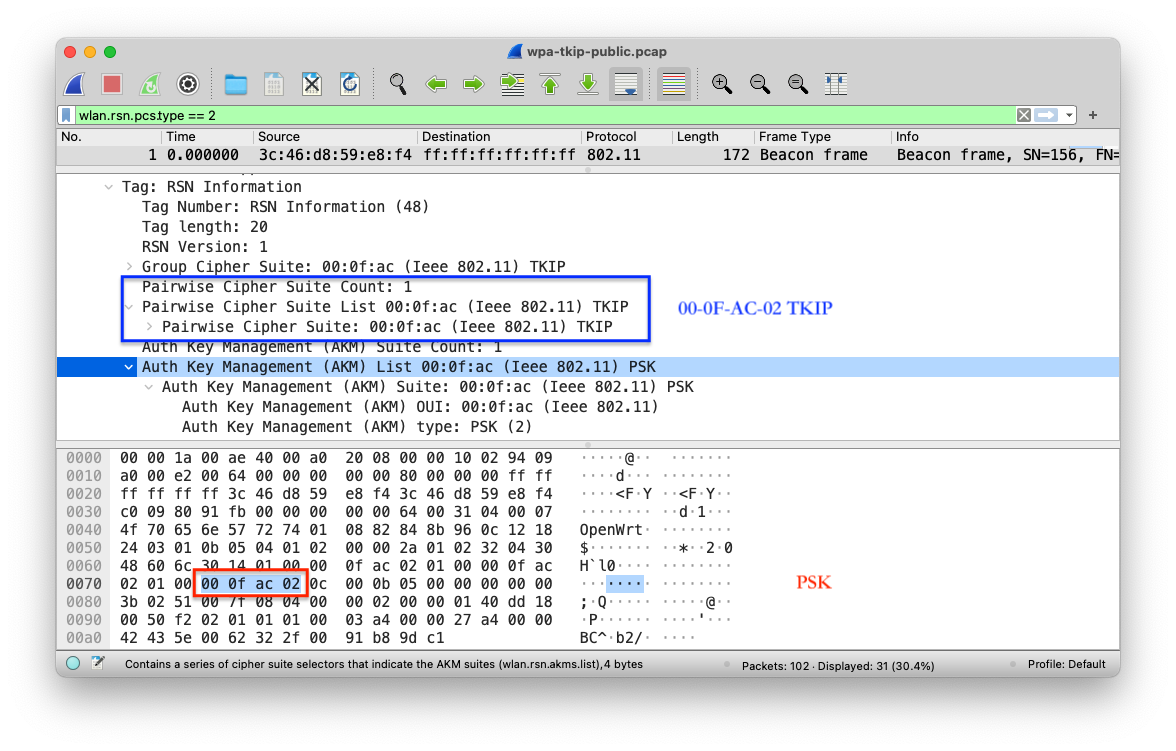 wlan.rsn.pcs.type==2 && wlan.rsn.pcs.count==1