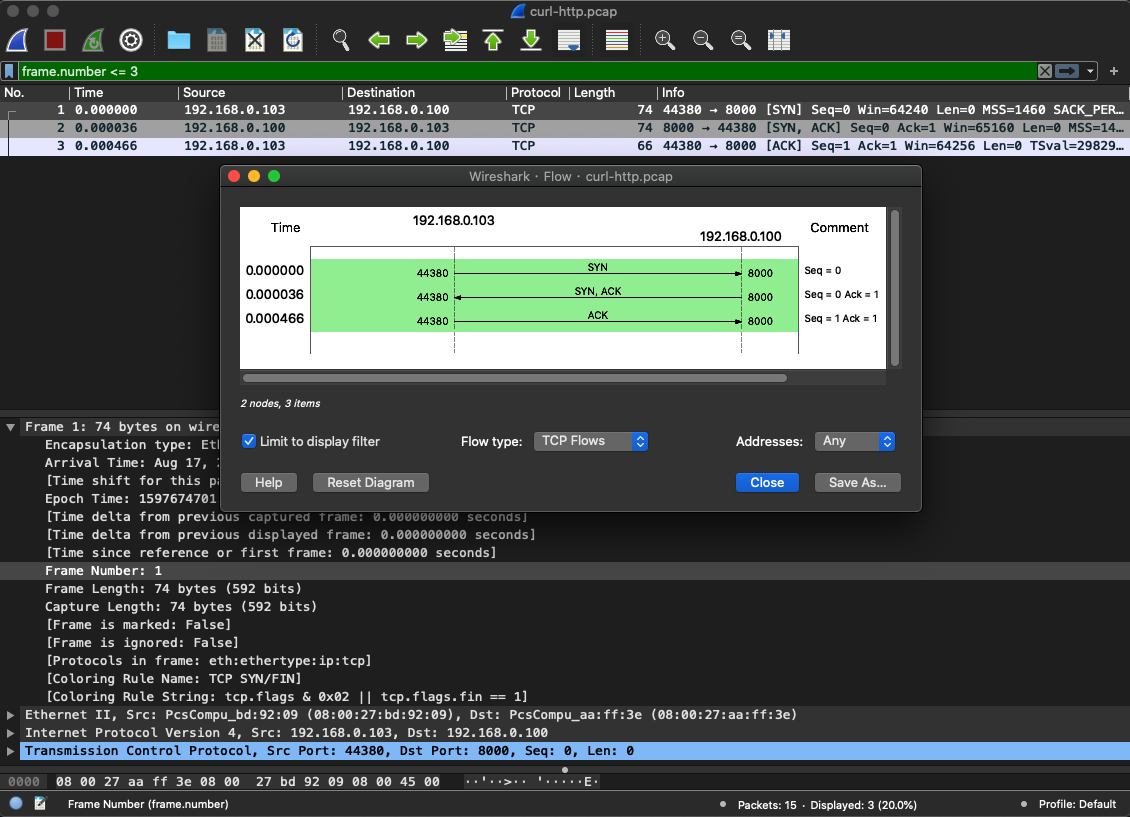 Wireshark 工具菜单里 Statistics –> Flow Graph